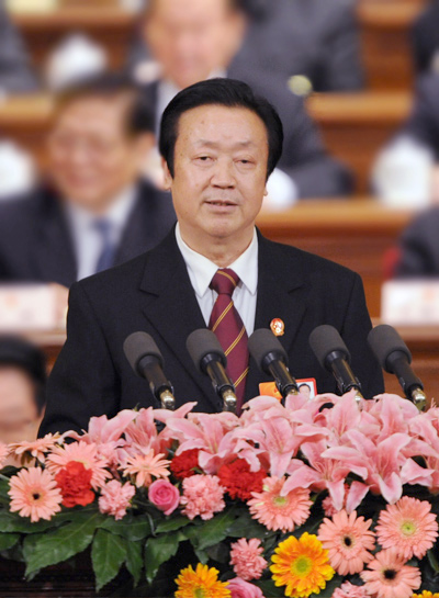 3月11日下午15时,第十一届全国人民代表大会第五次会议在人民大会堂举行第四次全体会议,听取最高人民法院院长王胜俊作最高人民法院工作报告,听取最高人民检察院检察长曹建明作最高人民检察院工作报告。图为最高人民法院院长王胜俊作最高人民法院工作报告。中国人大网 李杰 摄