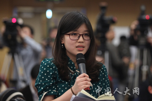 3月7日下午,十二届全国人大一次会议在梅地亚中心举行记者会,科技部部长万钢就“创新驱动发展战略”的相关问题回答中外记者的提问。图为人民日报、人民网记者提问。罗荣 摄