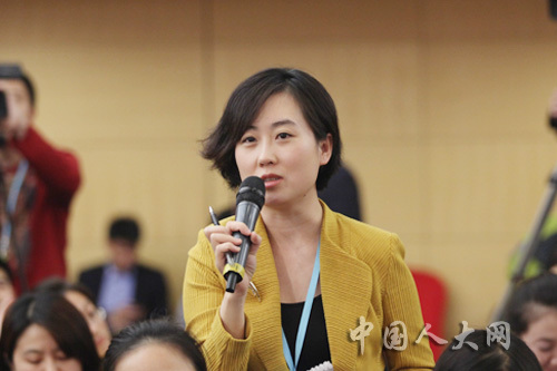 3月11日下午,十二届全国人大一次会议在梅地亚中心举行记者会,农业部副部长陈晓华,农业部总经济师、办公厅主任、新闻发言人毕美家就“增强农村发展活力,稳定发展粮食和农业生产”的相关问题回答中外记者的提问。图为凤凰卫视、凤凰网记者提问。罗荣 摄