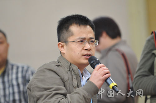 3月13日上午,十二届全国人大一次会议在梅地亚中心举行记者会,民政部部长李立国,副部长姜力、窦玉沛就“保障基本民生,发展社会服务”的相关问题回答中外记者的提问。图为大公报、大公网记者提问。中国人大网 李杰 摄