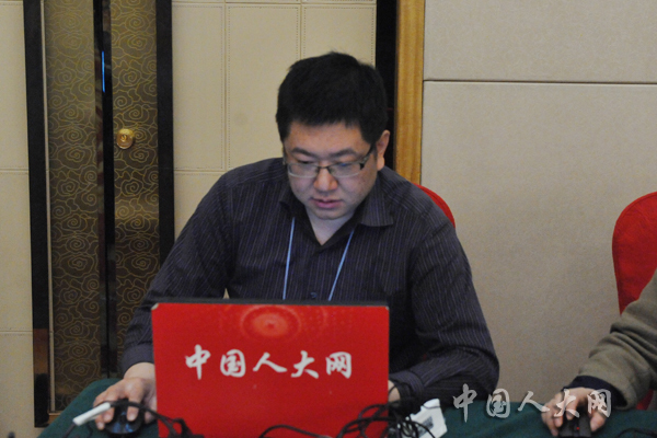 3月7日上午,十二届全国人大五次会议在梅地亚中心举行记者会,财政部部长肖捷、财政部部长助理戴柏华就“财政工作和财税改革”的相关问题回答中外记者的提问。图为本网正在现场直播。中国人大网 罗荣 摄