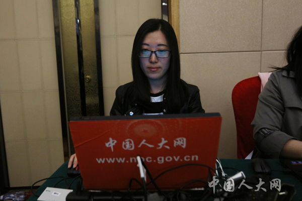 3月11日上午,十二届全国人大五次会议在梅地亚中心举行记者会,国家卫生计生委主任李斌、副主任王培安和副主任、国务院医改办主任王贺胜就“‘十三五’开局之年卫生计生改革发展”的相关问题回答中外记者的提问。图为本网正在现场直播。中国人大网 冯涛 摄