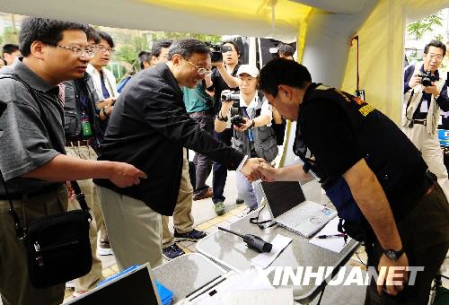 5月30日,外交部长杨洁篪在成都看望援华救灾国际医疗队。这是杨洁篪在华西医院看望日本医疗队。 新华社记者 任勇 摄