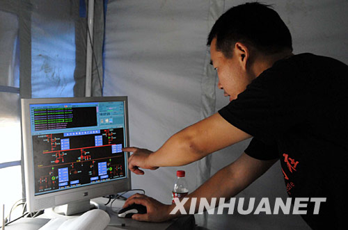 6月10日,北川县通口河电站技术人员在监测水情。新华社记者 肖春飞摄