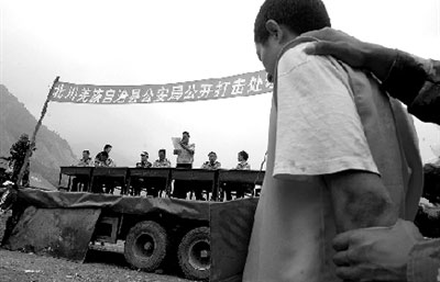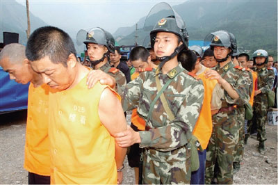 昨天下午,在北川擂鼓镇安置点简陋的会场,北川公安局震后首次对18名犯罪嫌疑人进行了公开处理,其中13名系因进入灾区盗窃被捕。